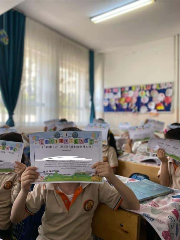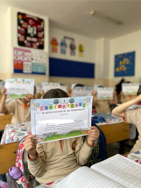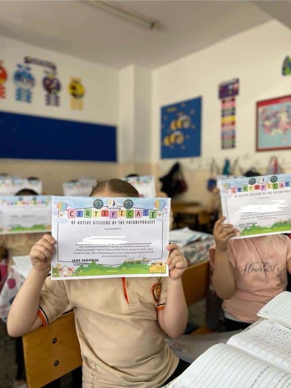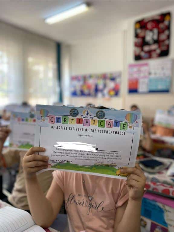 Okulumuzda yürütülen Active Citizens of the Future (Geleceğin Aktif Vatandaşları) eTwinning projemiz kapsamında öğrencilerimize proje katılım sertifikalarını verdik.